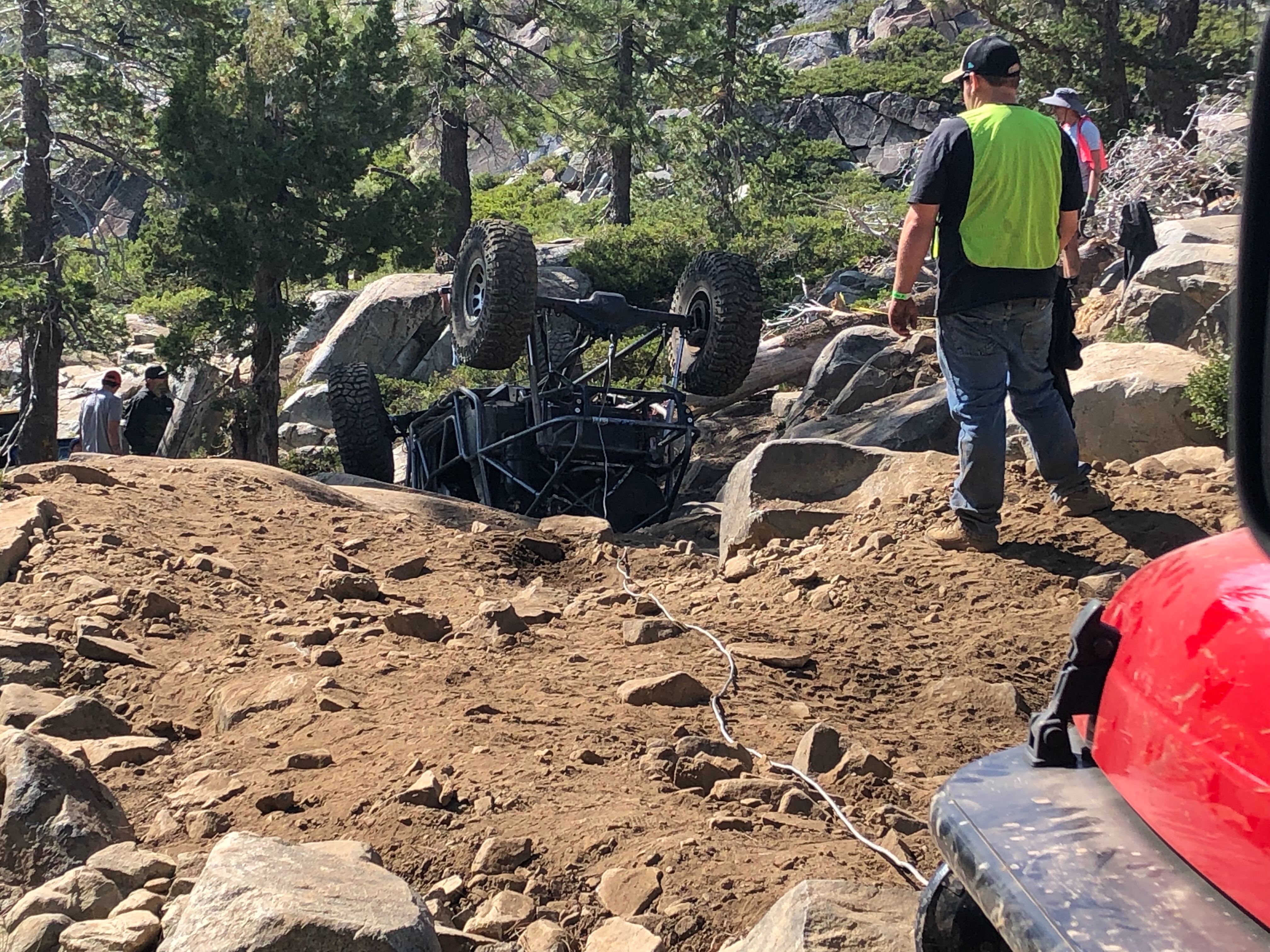 I found a YouTube video that includes footage of one of the roll overs on winch hill five at Sierra Trek this year. The winch hill five roll over section begins at 5:55 on the video. Tyler (white shirt and boonie hat) is spotting and was slightly below the Jeep when it started to roll (watch how fast Tyler moves!). Coincidentally I knew two of the guys who were in another rig in this group so I got to catch up with them. Our son's went to school and played baseball together. My Jeep (red TJ) is parked perpendicular to the hill so I was the one who winched him back over while the vehicle above provided winch support to keep it from rolling down hill. This video is an example of how quickly a vehicle can roll almost unexpectedly. Fortunately I had brought a spill kit with me so we were able to clean up and remove the contaminated soil from the oil spill. Enjoy the action.