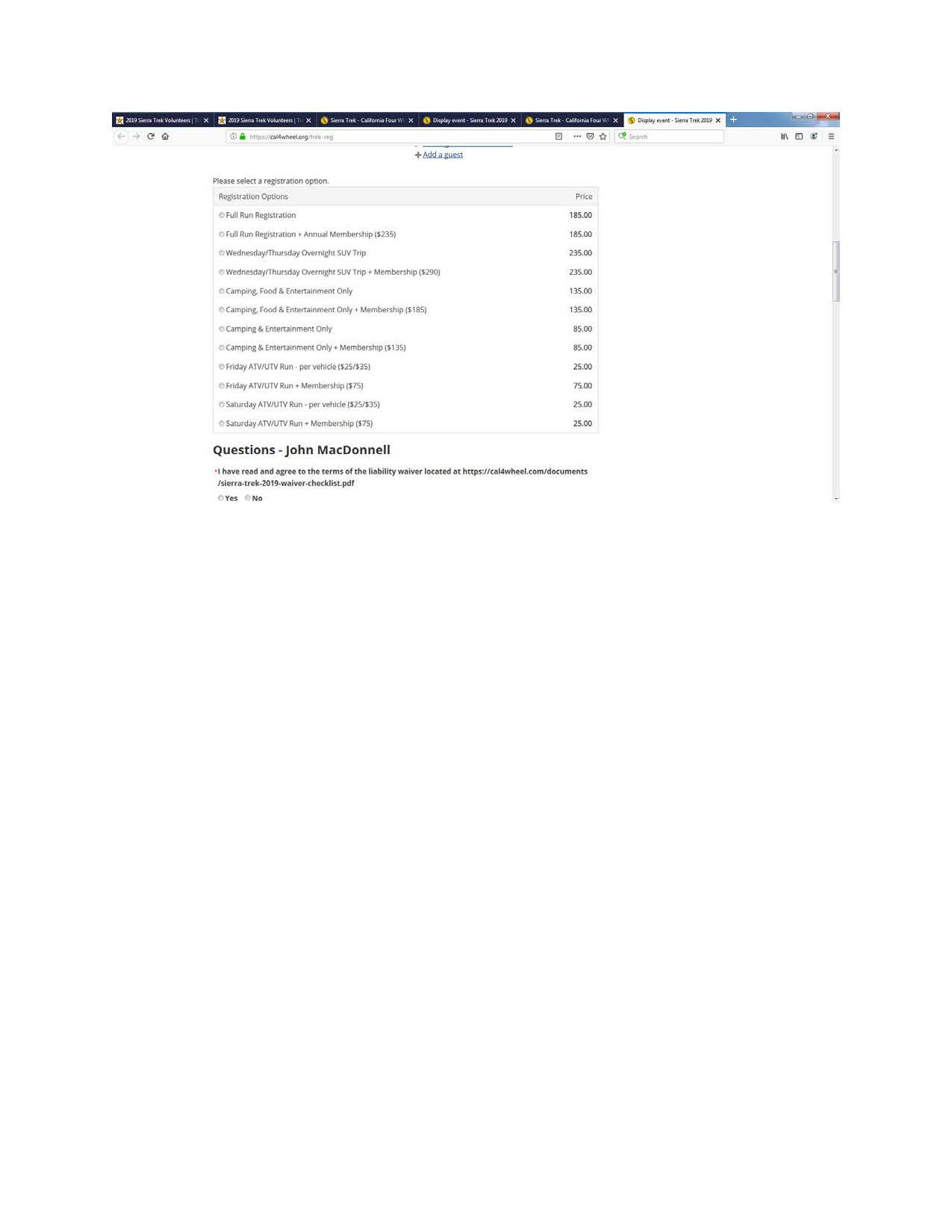 OfflineHere is the Winch Hill 5 volunteer signup link. After you log in you will see a Trek Committee Registration option ($90 for Cal4Wheel members, $100 for non-members). There is a winch hill five committee option. In club name let them know that you are with Nor-Cal4X4 and Gold Hills Posse.