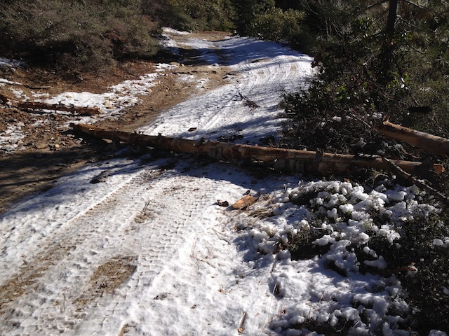 OfflineMe and My Son Timothy went up and did a patrol on Strawberry Trail today Saturday 11/23/13. Here are some Pics. It was a beautiful day. Just a bit chilly. The trail up to Strawberry was fairly easy, with up to 2-3" snow. Strawberry trail entrance now has a "Gate" on the entrance to the actual trail. The Strawberry trail was very icy, all the streams are frozen. All the rocks had a film of ice on them, so it was very slippery climbing them. We cleared two 6" logs that had fallen onto the rail and just above "waterfall" there was a 20" tree that had fallen over the trail. We were able to use my "new" winch and a snatch block to pull the 20" - 15' log over to the side of the trail. (I'll have a video later) The log needs to have all the branches cut off (we didn't have our saw) We made it up to "V" Rock but was not able to get over it with the 6" of snow and the ice on the rocks. We did not see any one on the trail and it looks like no one had been on the trail sense it had last snowed.